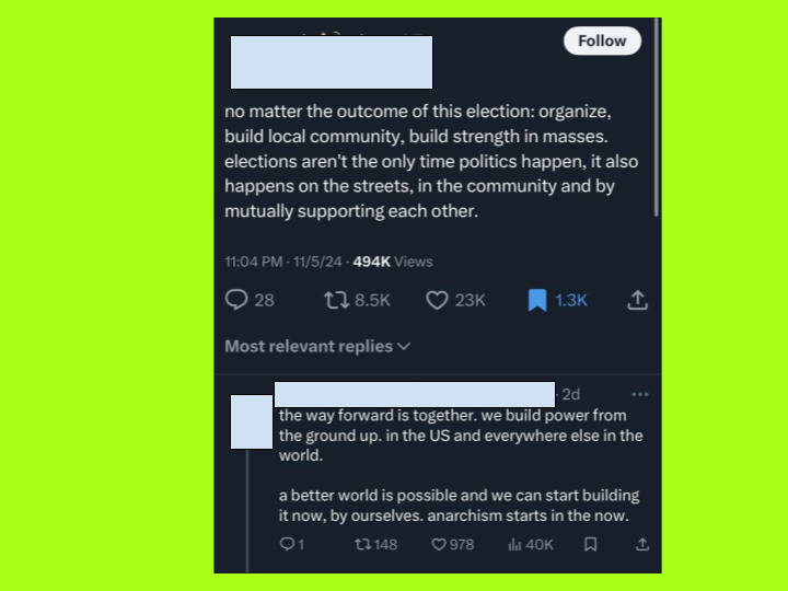 Lotta people feeling raw feelings on my Twitter timeline. Lotta think pieces & threads & tiktoks discussing the election results. These are some of the things that I’ve seen discussed on Twitter.