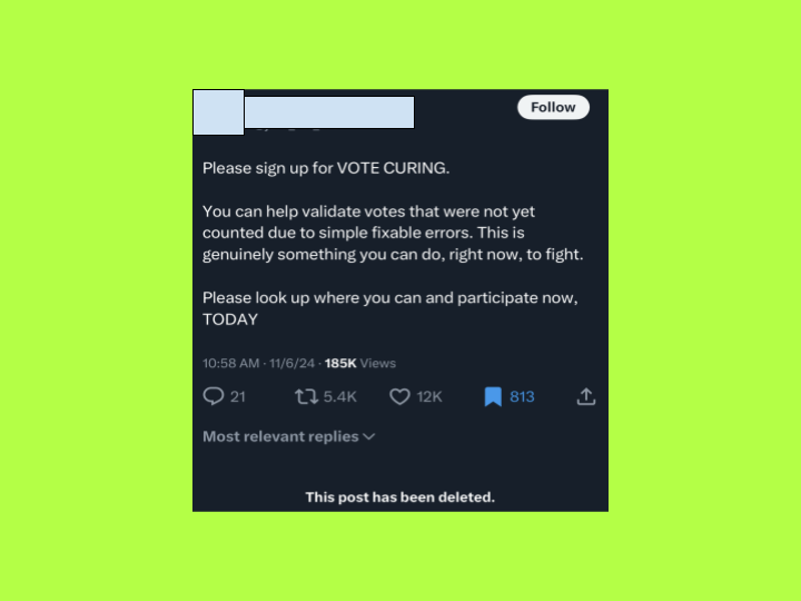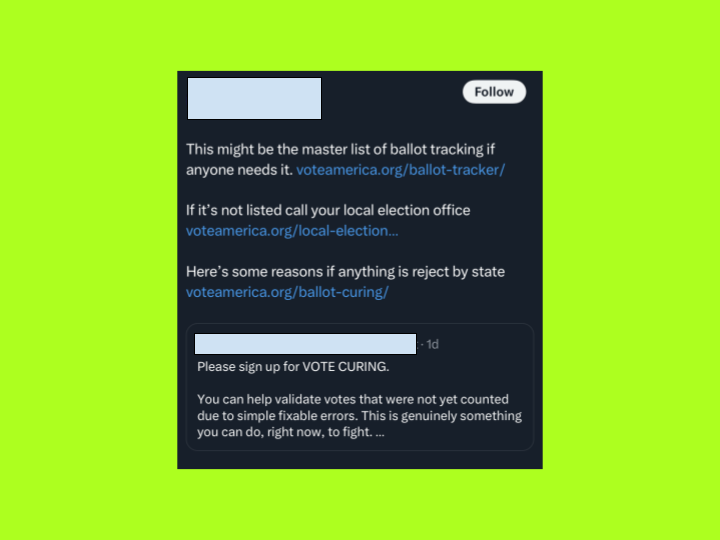 The night of & the day after the election, I saw a quote of a now-deleted twee about Vote curing. Where you request to see that your vote was received and counted.
